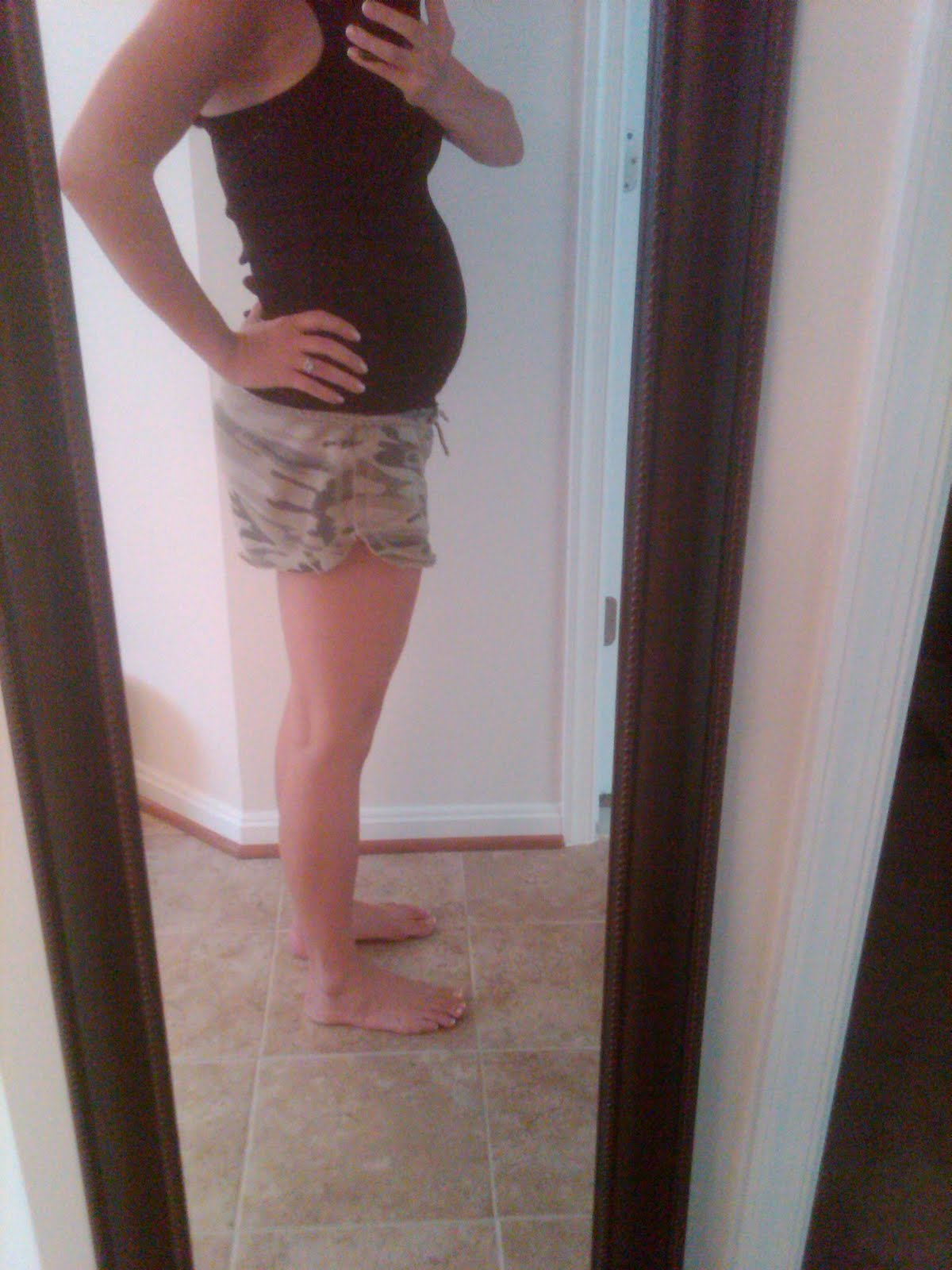 You look fantastic. Your legs look really toned in that picture. 😉 And the bump is adorable!