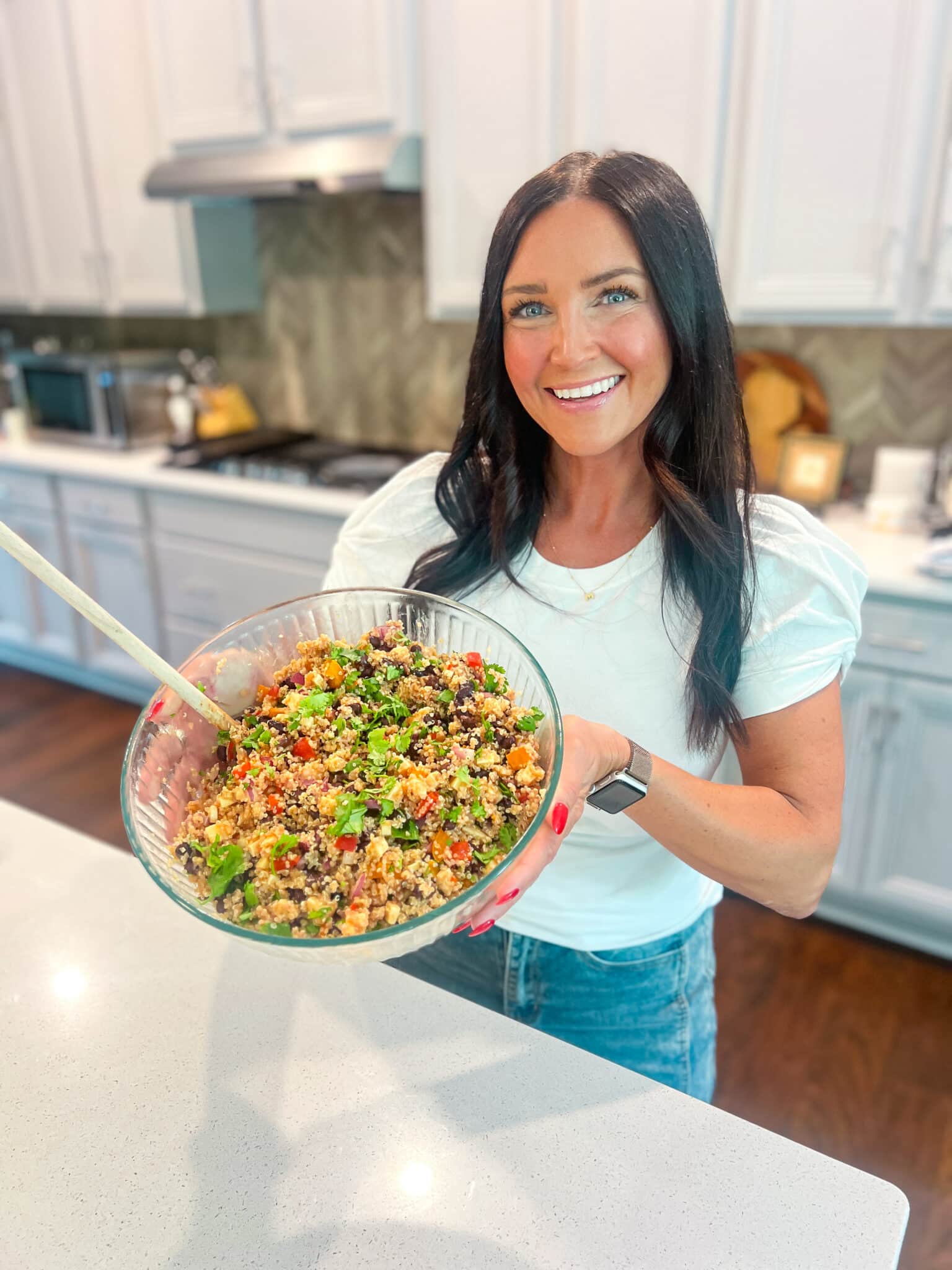 This Mexican Quinoa Salad is super filling and gives you about 20 grams of protein in a serving. I hope you love it as much as we do!